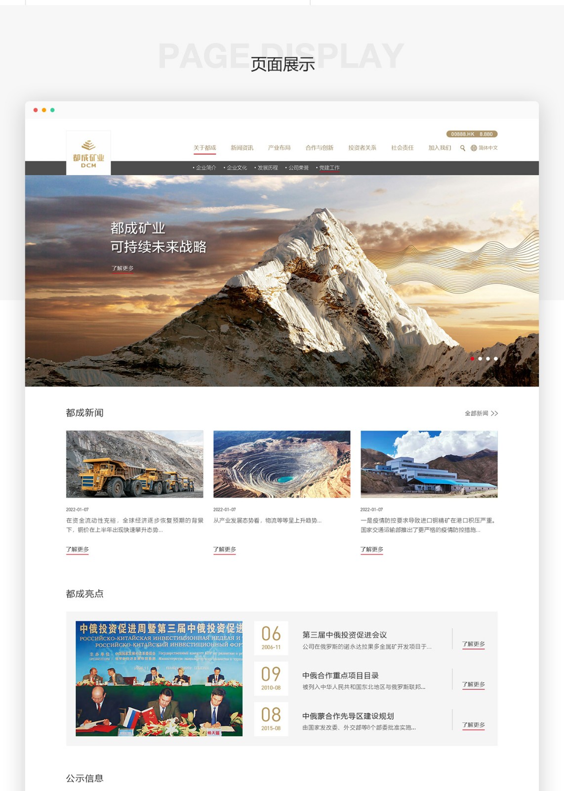 因?yàn)閮?nèi)蒙古都*礦業(yè)的業(yè)務(wù)范圍比較廣,所以對(duì)外展示信息比較多。在實(shí)際改版工作當(dāng)中,我司設(shè)計(jì)師再度對(duì)其進(jìn)行細(xì)化,分門別類展示相關(guān)信息,保證展示效果的同時(shí),展示信息也比較全面。